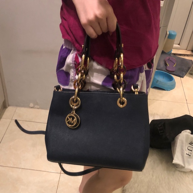 Jual michael kors bag cynthia small in navy 100 authentic